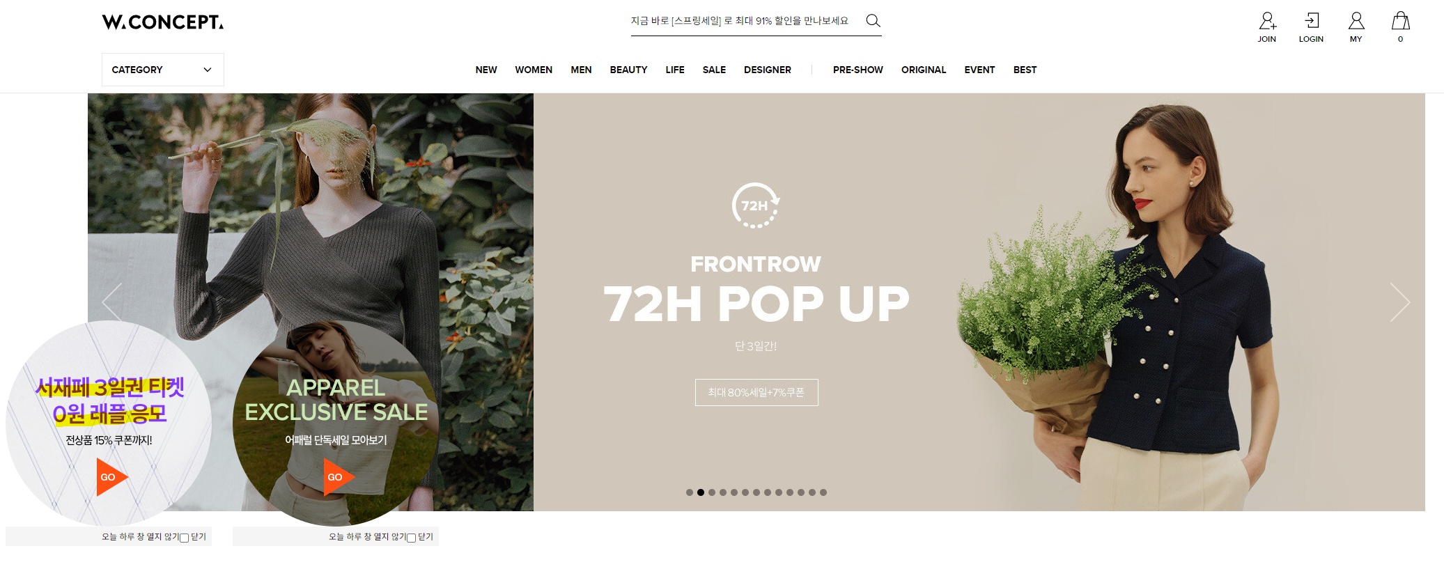 W컨셉 홈페이지를 들어가시면 바로 팝업 배너로 들어갈 수 있는데요.