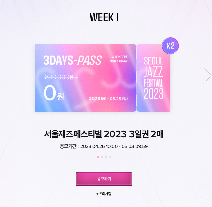 마침 W컨셉에서 서재페 3일권 티켓 모두를 0원에 예매할 수 있는 래플 정보가 있다고 해서 가져오게 되었습니다.